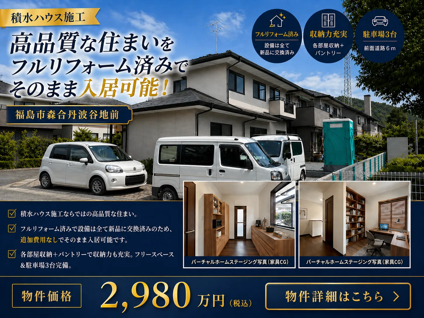 弊社は業歴30年を超える不動産売買の会社です。これまで福島県中通りエリアを中心に、累計数百件の不動産買取・販売・仲介を行いました。地域での不動産売買に関する知識・ノウハウは他社に負けない自信がございますので、まずは不動産のことなら何でも弊社にご相談ください。また直近では札幌に拠点を持って、道央エリア中心に不動産買取も行っております。「誠実さ」「丁寧」「迅速な対応」を心掛けて対応いたします。