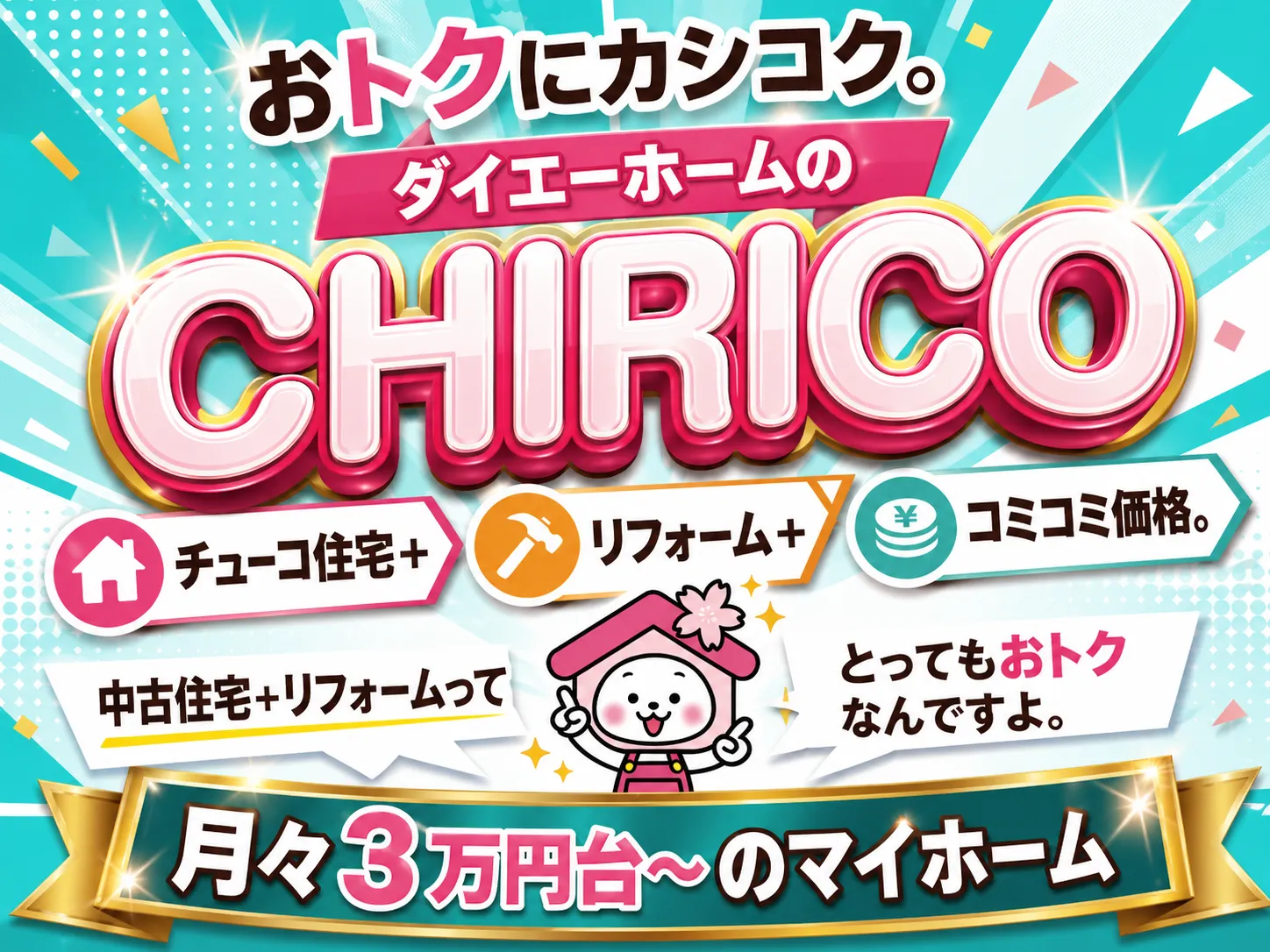 中古住宅と聞くと「古い」「汚い」と思うかもしれません。でも、ダイエーホームの CHIRICO(チリコ)は違います。すべての物件は当社が責任をもってリフォーム済み。清潔・快適・安心品質で、購入後すぐに新生活を始められます。