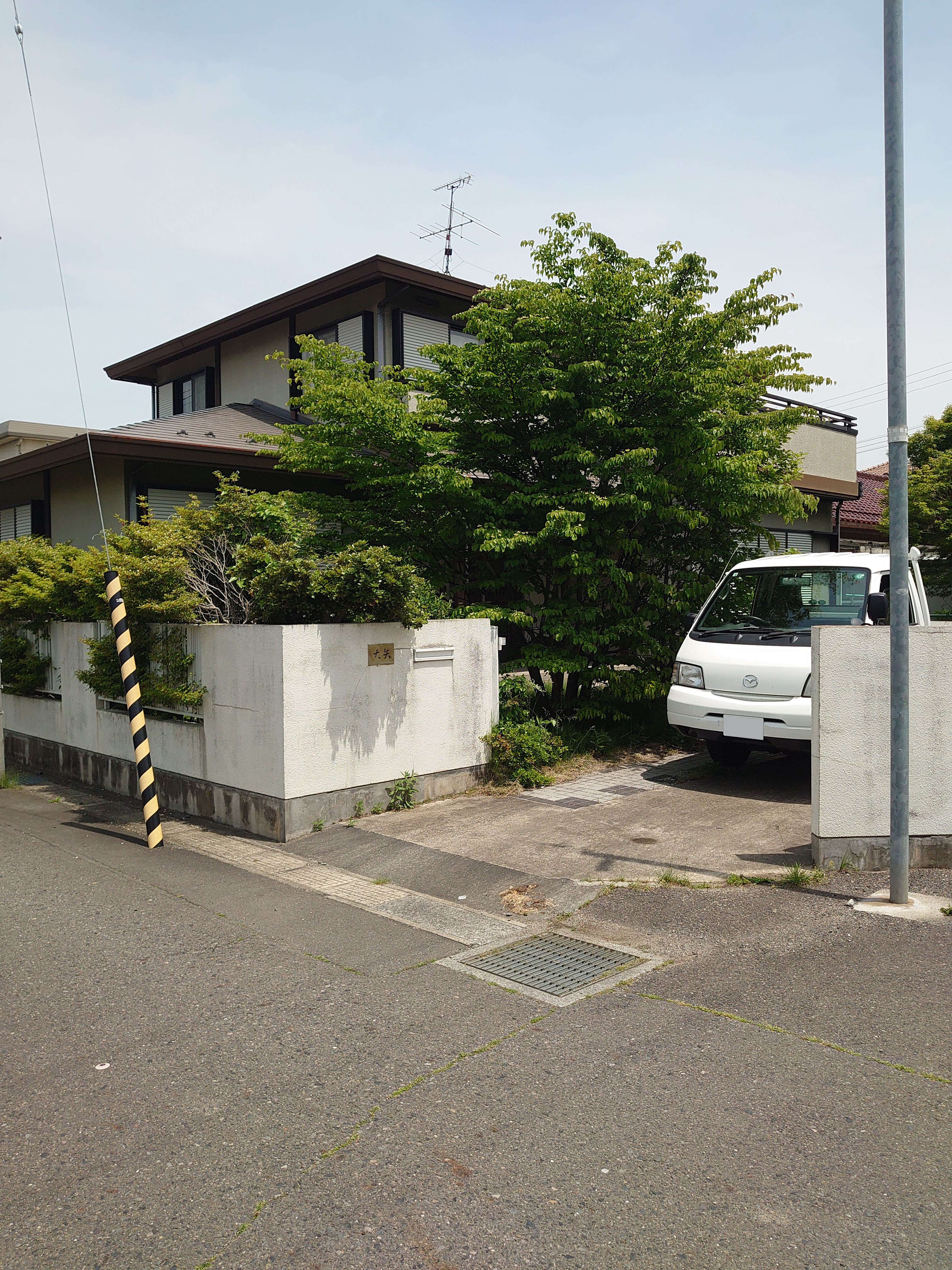 郡山市静町にあるセキスイハイムのツーバイフォー住宅で、駐車場の拡張工事が始まりました。現在は植栽の撤去と塀の解体を進め、来訪車やご家族の複数台利用にもゆとりが生まれる計画です。
