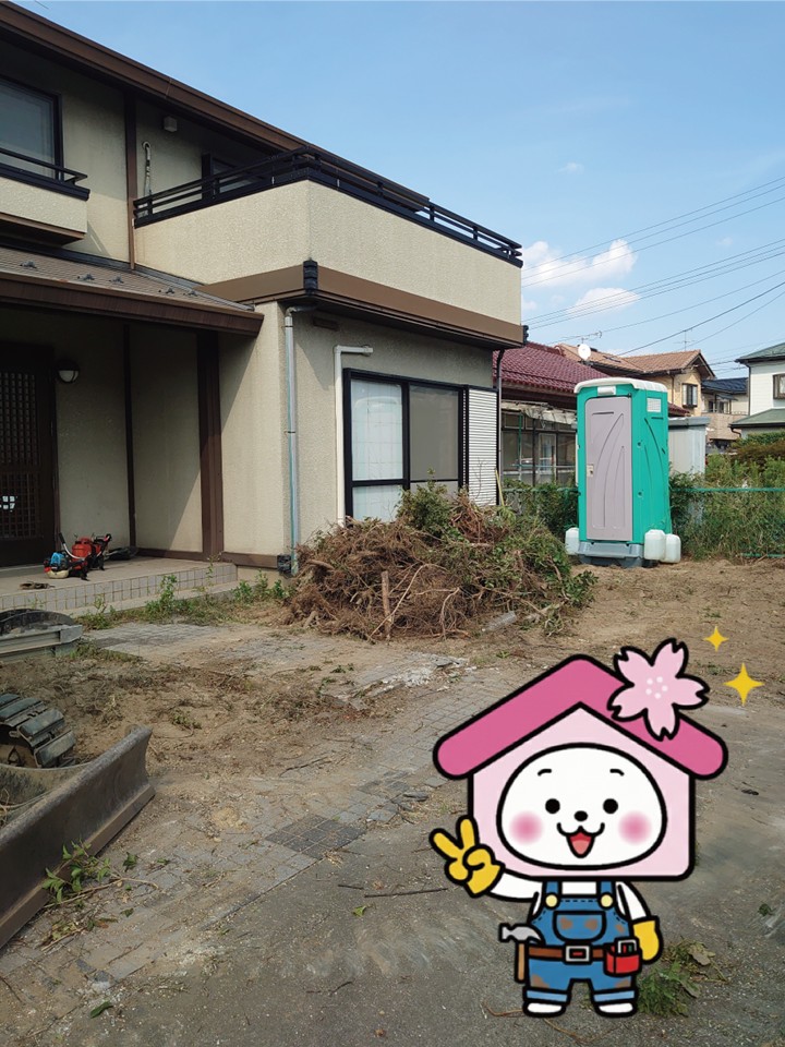 郡山市静町にあるセキスイハイムのツーバイフォー住宅で、駐車場の拡張工事が始まりました。現在は植栽の撤去と塀の解体を進め、来訪車やご家族の複数台利用にもゆとりが生まれる計画です。