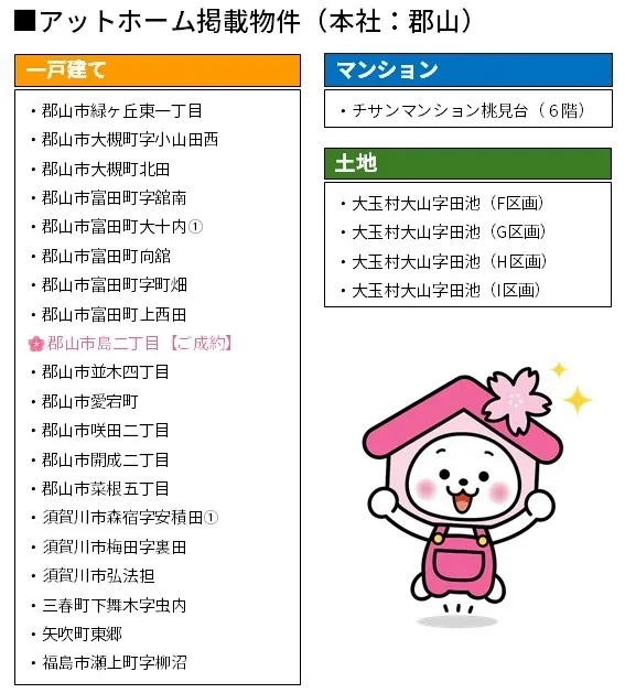 当社では、郡山市内を中心に、戸建住宅の売買物件を多数取り扱っております。