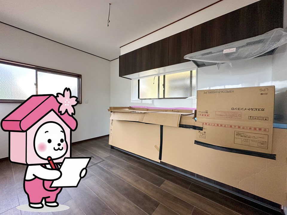 キッチンは段ボールに覆われていて、まだその全貌はおあずけ状態📦👀