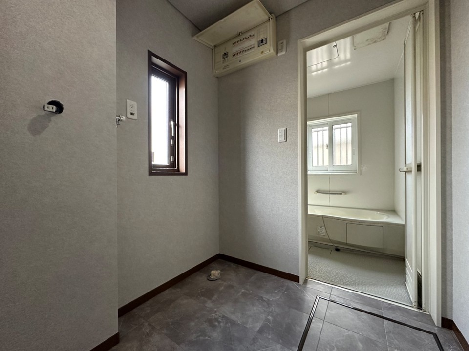洗面脱衣所から浴室へスムーズな動線。窓付き浴室は換気しやすく、清潔感を保ちやすいのもポイントです。
