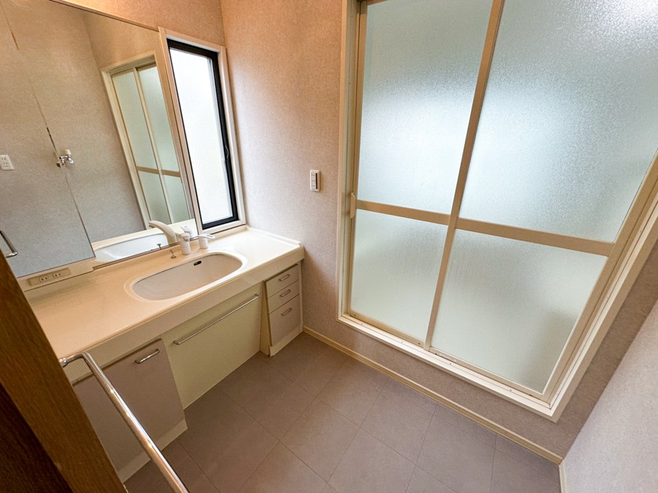 洗面室は大きな鏡と広めのカウンターで、朝の支度もゆったりできます✨収納スペースもあり、洗面用品やタオルもすっきり片づけられます🧺