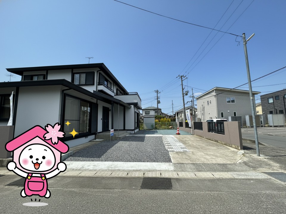 駐車スペースも広々としていて、4台分しっかり確保🚗🚗🚗🚗!陽当たりも良く、青空に映えるとても気持ちのいいおうちです☀️