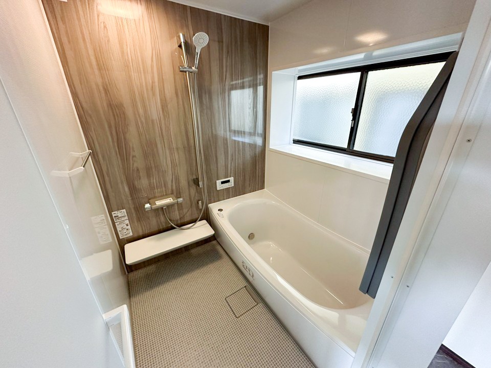 ゆったり足を伸ばせるバスルーム。一日の疲れを癒す、落ち着いた色味の空間です。🛁