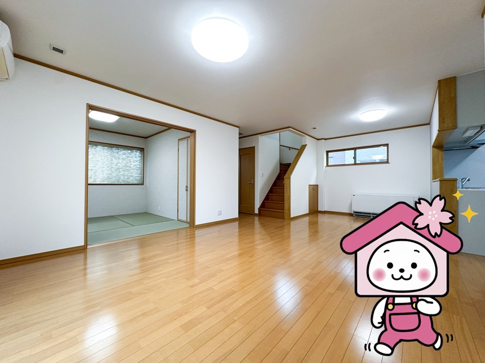 見てください、このLDK!ひろびろ空間で開放感たっぷり🤩明るいフローリングと真っ白な壁紙が、お部屋全体をパッと明るく清潔に彩ります!☀️和室も隣接し使い勝手◎👍 新しいお家で素敵な毎日を!🏠✨