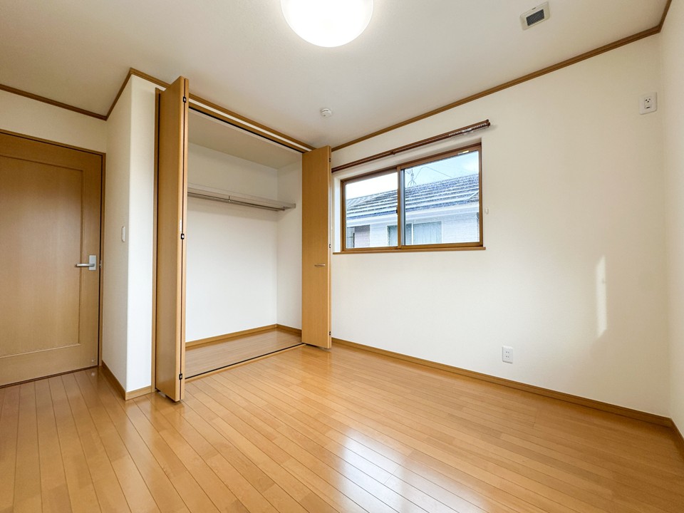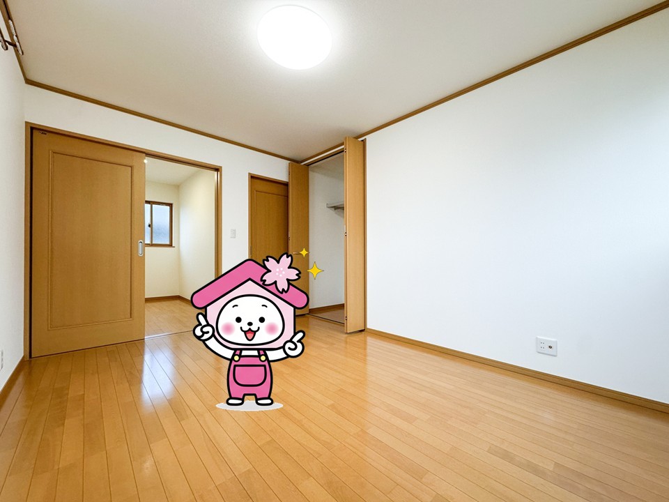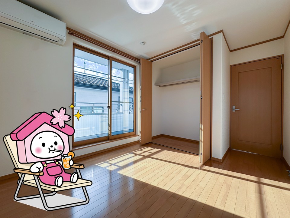 こちらは南東の部屋、白い壁と明るいフローリングがとっても爽やかですね😊☀️大きな窓から太陽の光がたっぷり差し込んで、お部屋全体が明るく開放的な雰囲気です。もちろん、お片付けに便利な収納も各部屋に完備👍これでスッキリとした快適な毎日が送れそうですね🏠💕