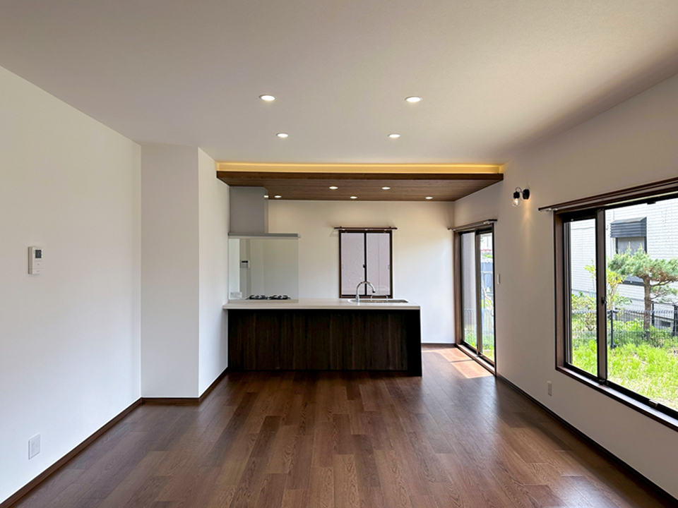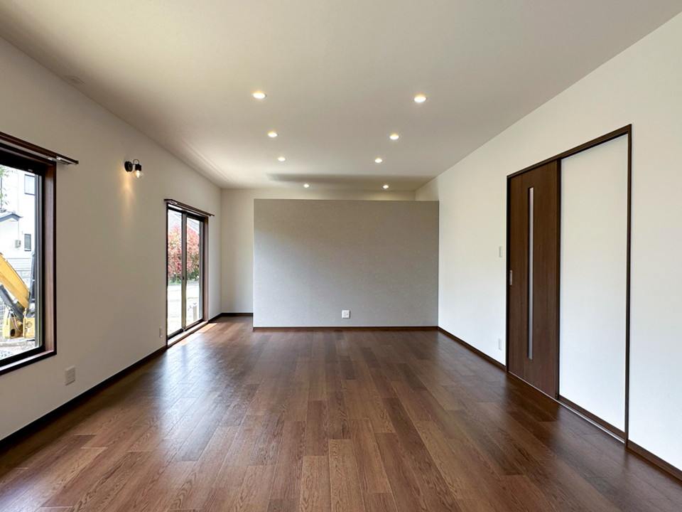 くつろぎながらゆったり過ごせる、落ち着いたリビング空間を演出しています。